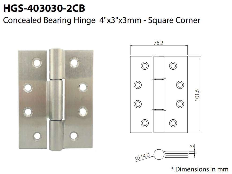 * Dimension of the door must be fitted according to EN1935 standard. Advice regarding the use of hinges on doors with excessive width/height please refer to Annex D of BS EN 1935